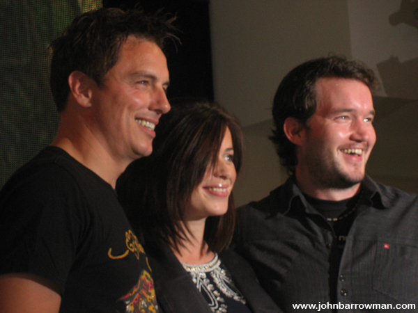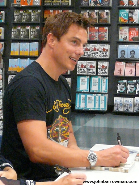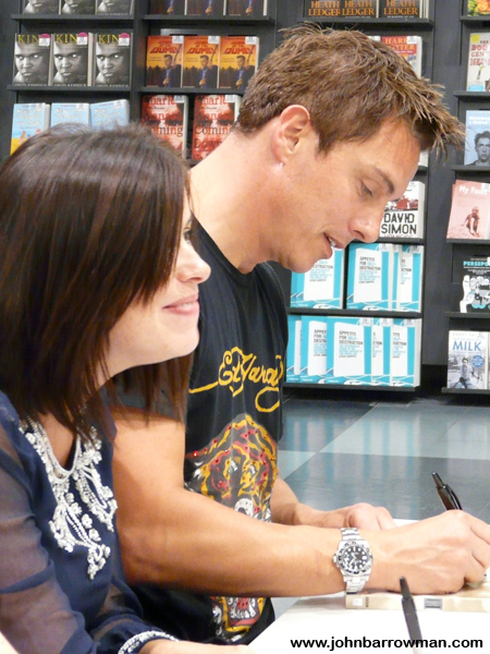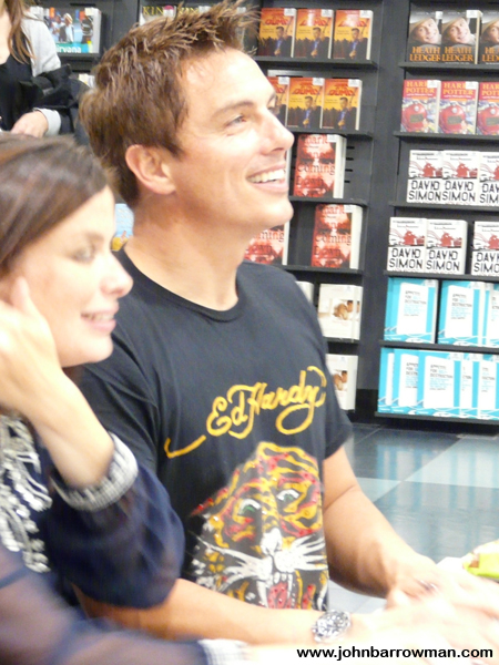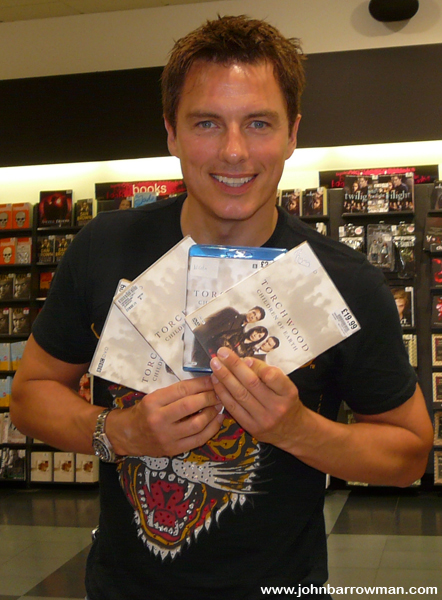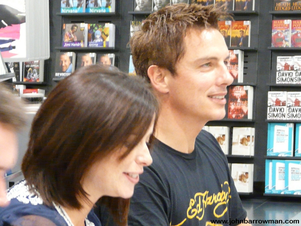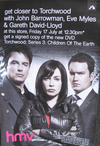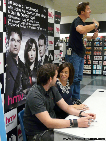 John, Eve Myles and Gareth David Lloyd signing copies of Torchwood: Children of Earth in HMV