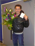 Here's a shot of John with the flowers and note we here at JB.com sent him for opening night.